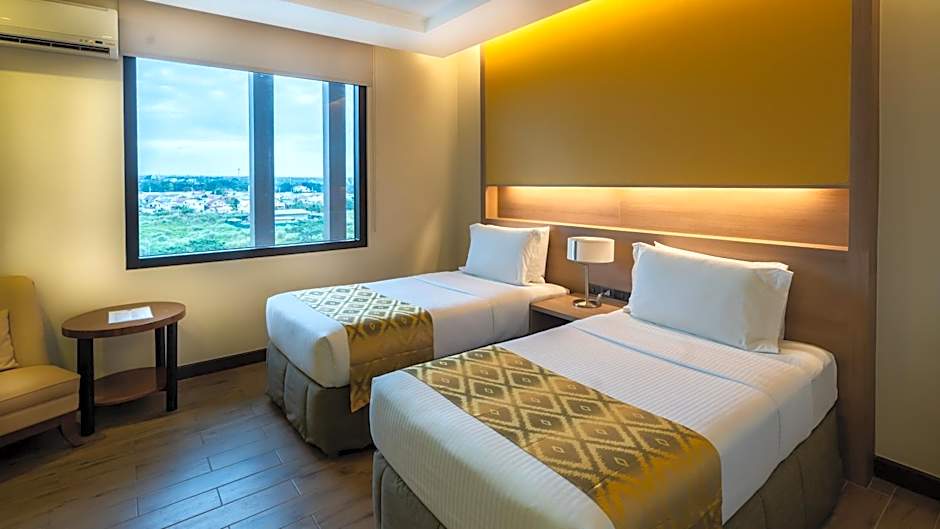 Fitted with twin beds, this air-conditioned room comes a 40-inch flat-screen TV with cable channels, a working desk, and a safety deposit box. The private bathroom comes with a bidet and shower facility along with a hairdryer.